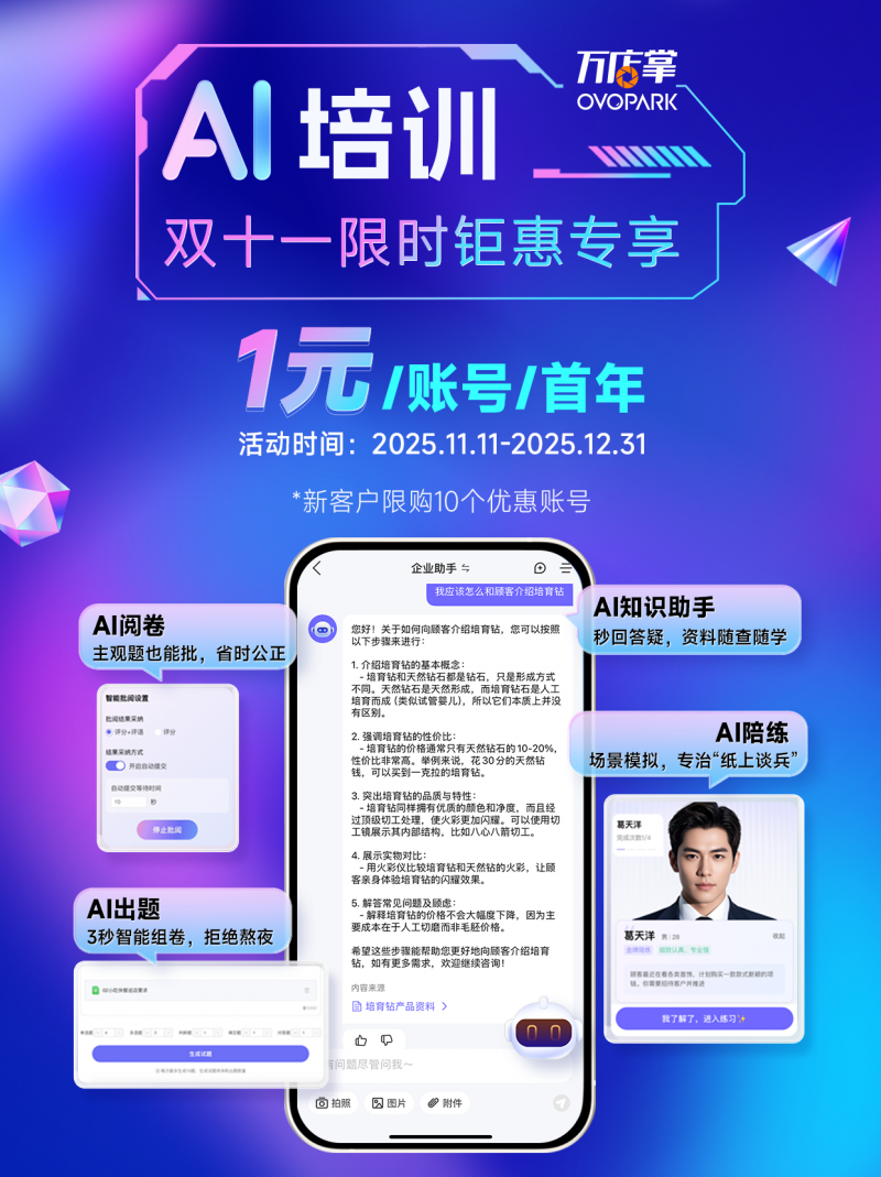 万店掌AI培训系统会按照员工岗亭、职级取查核数据生成个性化进修地图,一线员工办事尺度参差不齐,让尺度化实正落地收效。精准婚配分歧业态的焦点。快速化、高质量”等多沉?